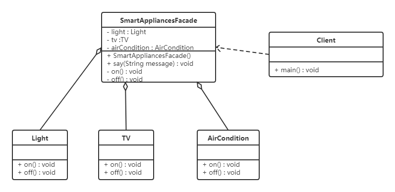 - 对客户屏蔽了子系统组件,减少了客户处理的对象数目,并使得子系统使用起来更加容易。