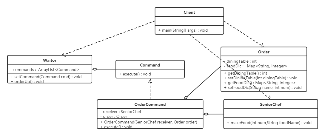 服务员: 就是调用者角色,由她来发起命令。